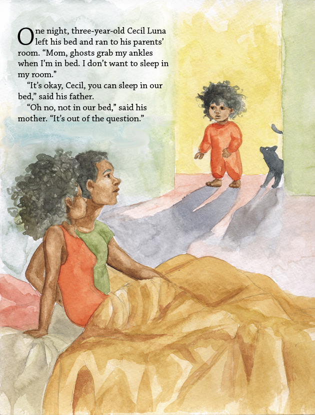 Three-year old Cecil Luna is afraid of the dark. He frequently wakes up believing there’s a ghost in his room and wanting to sleep with his parents. To help him overcome his fear of the dark, his mother throws a special Halloween party. The neighborhood kids dress up as monsters, scaring Cecil with the ghostly chant (Ooga-Ooga-Ooum) he hears when he wakes up alone and scared in his room.