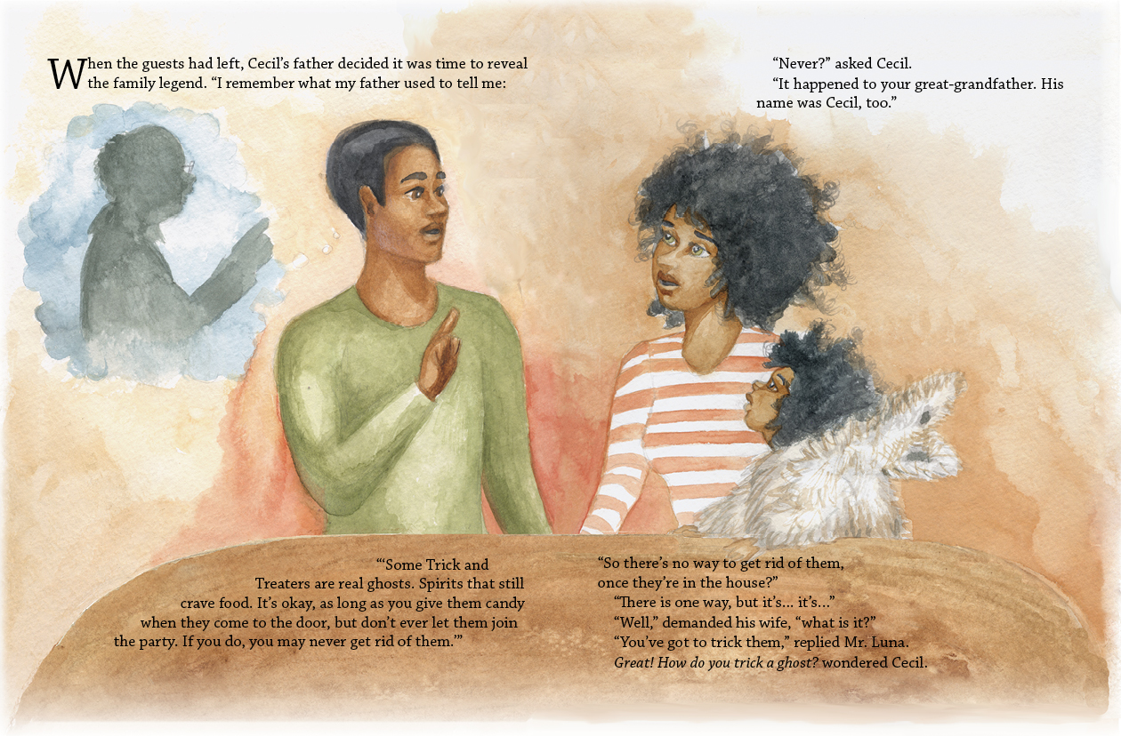 After several years of sending her children out to trick-and-treat on Halloween night, she began to see similarities with customs from her native Cameroon. This prompted her to write down some ideas in French for a Halloween story — the origin of Halloween Ooga-Ooga-Ooum. When she showed it to her husband, writer JJ Semple, he was impressed with the narrative and immediately started translating the story, fleshing it out to a full-length picture book for children. Although the phrase Ooga-Ooga-Ooum reminded JJ Semple of Alfred Hitchcock's famous notion — the MacGuffin, Véronique claims it came to her spontaneouly, a childhood memory of an African ghost story. Forged in the experience of three cultures (African, French, American), Halloween Ooga-Ooga-Ooum is a truly multicultural series.